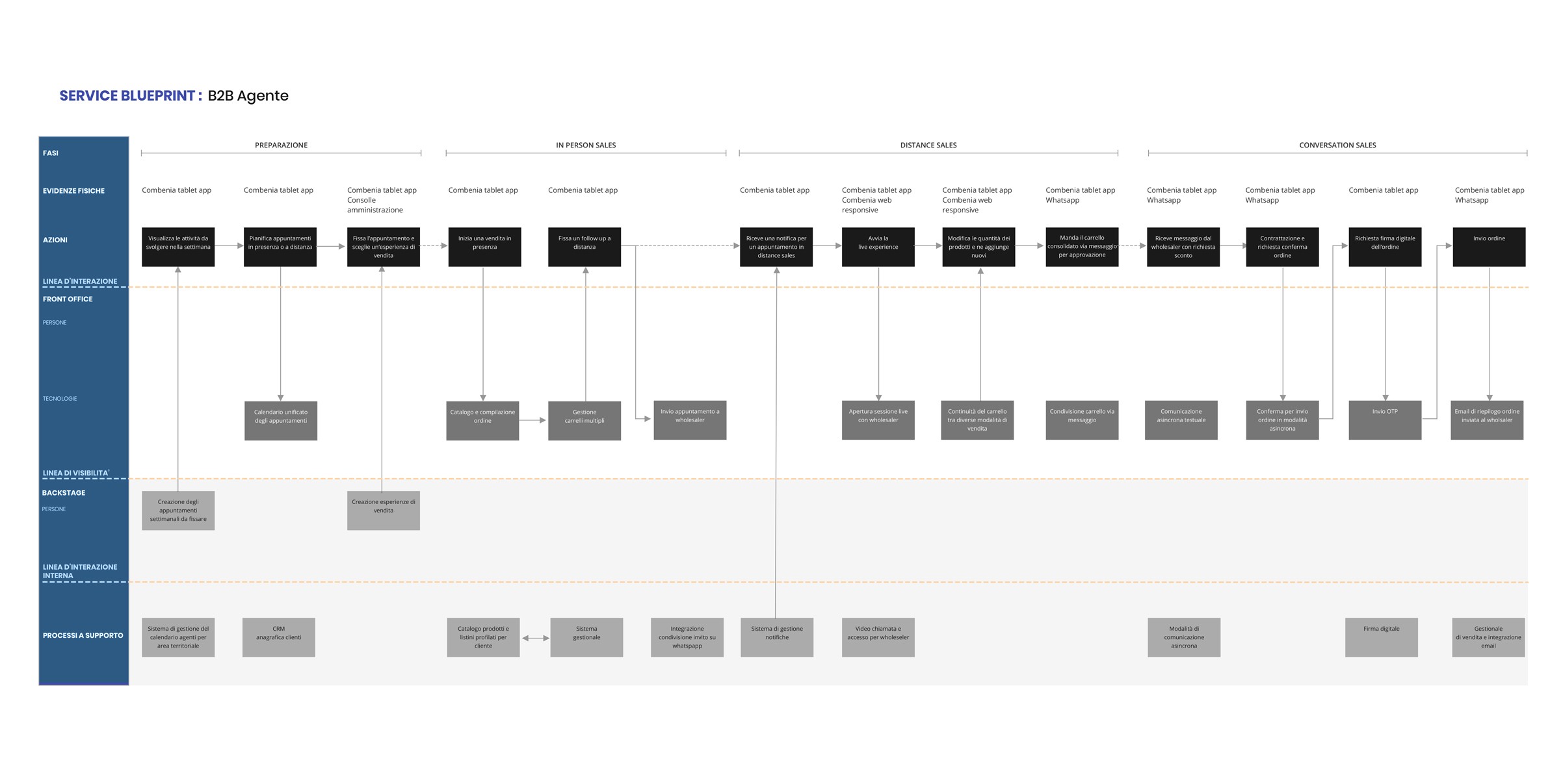 Vendite a distanza, acquisti digitali in store e ordini a catalogo per retailer vengono visualizzati e dettagliati con la creazione di 4 Service blueprint .